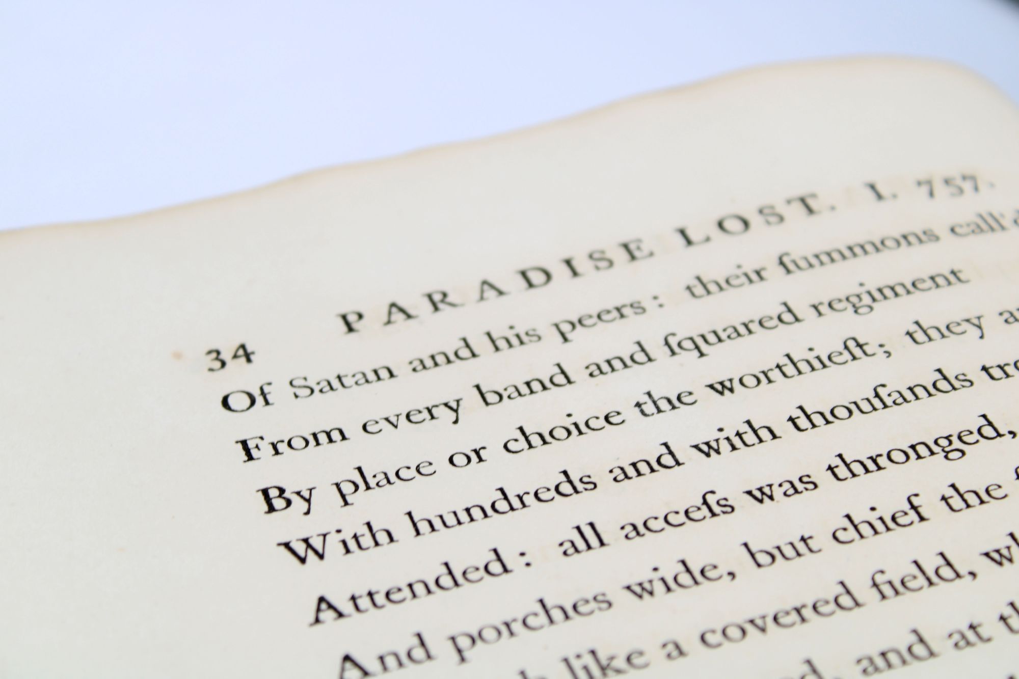 Milton originally envisioned the poem as England’s first great epic. He entertained writing about the founding of Britain itself but ultimately landed on the story of the fall of Adam and Eve, preceded by the fall of the poem’s most compelling character, Satan. Paradise Lost’s beauty radiates from a man who was so in touch with the dual human experiences of disappointment and hope, captured in its final lines that depict the Edenic pair leaving the garden in anticipation of the promised messiah from whom their sin will be undone:
