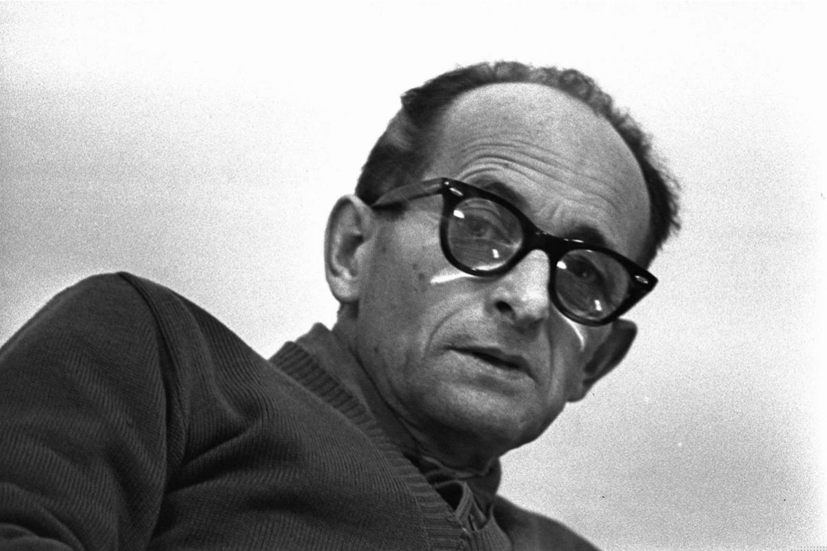 A middle-aged man sits in a glass booth, or perhaps a cage. He seems bewildered, surprised to be there. His nervousness is visibly manifest to all onlookers—the trembling mouth, the shocked near-sighted eyes, the hands nervously clutching each other for comfort.